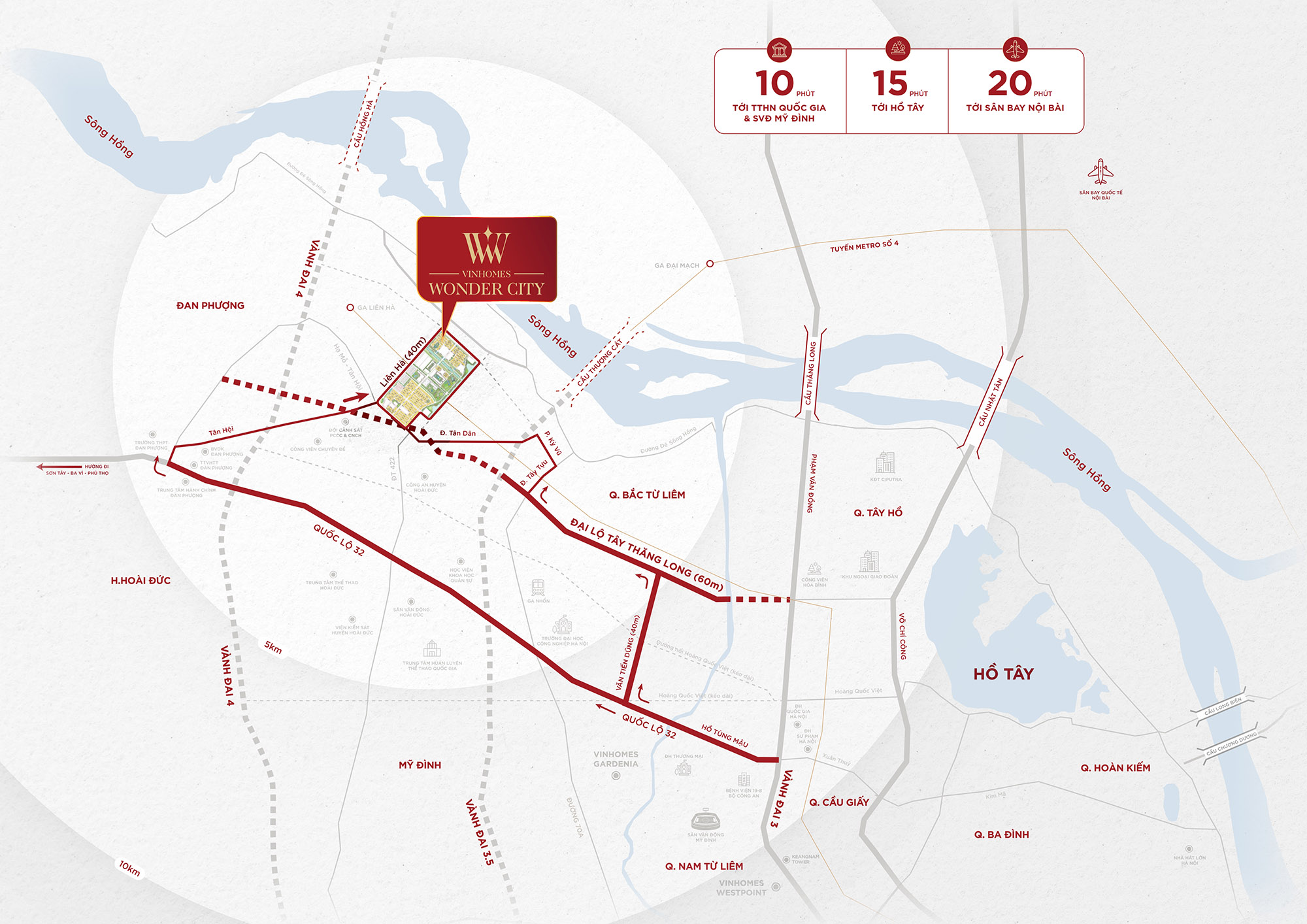 🔹 Dễ dàng kết nối sân bay Nội Bài, Hồ Tây, Cầu Nhật Tân, Metro Nhổn – Ga Hà Nội